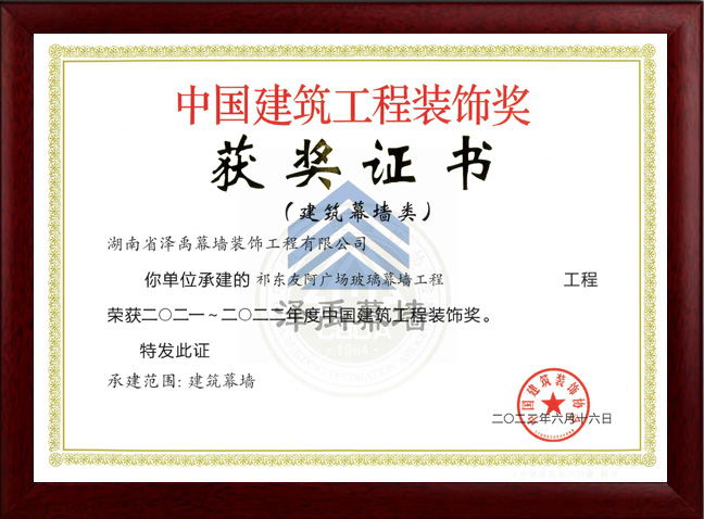 中國(guó)建筑工程裝飾獎(jiǎng) 獲獎(jiǎng)證書(shū)