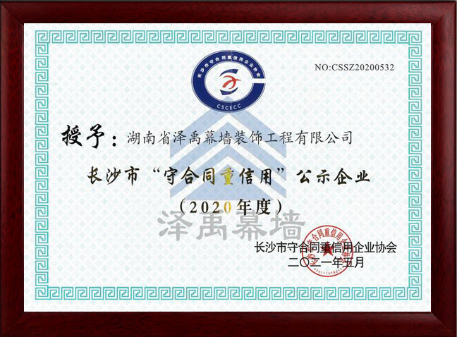 2020年長(zhǎng)沙市守合同重信用企業(yè)